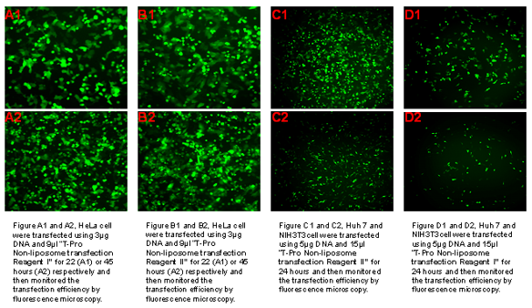 3. Excellent Stability: T-Pro NTR I, II, III Transfection Reagents are highly stable, resistant to oxidation or degradation during storage and handling, and have a long shelf life. They are less susceptible to interference by certain serum components, allowing for transfection in serum-containing media, which simplifies the procedure.