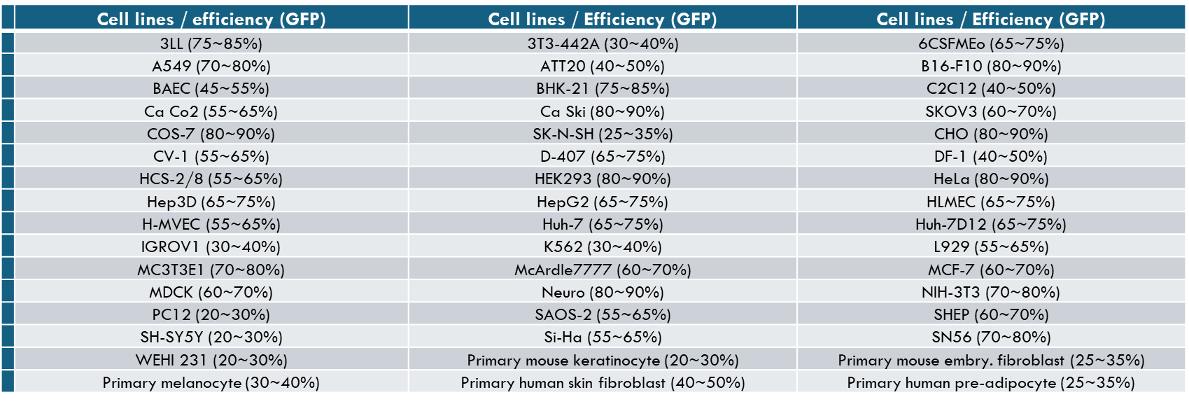 1. High Transfection Efficiency: When transfecting certain cell lines (such as primary cells, stem cells, neurons, immune cells, etc.), non-liposomal reagents often demonstrate higher efficiency than traditional liposomal reagents.
